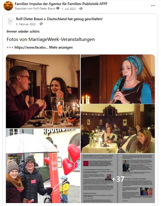 Der MarriageWeek-Vorstand schreibt im neuesten Newsletter*: „… Wir gehen davon aus, dass sich die Lage bis zur nächsten MarriageWeek im Februar 2021 soweit entspannt haben wird, dass wieder Veranstaltungen stattfinden können. Vielleicht werden besondere Auflagen wie Abstandsgebote und gewisse Schutzvorkehrungen erforderlich sein. Aber eins ist sicher: Nach einer Zeit der sozialen Entbehrungen wird unsere Aktionswoche die Herzen der Paare ganz besonders berühren. Damit es dazu kommt, müssen wir jetzt aber die Ärmel hochkrempeln. Jetzt gilt es, diese kommende MarriageWeek für Ihre Stadt / Ihren Ort / Ihre Gemeinde gut vorzubereiten. Haben Sie schon Ideen, womöglich bereits Räume reserviert und Referenten angefragt? Gibt es schon ein Planungsteam, das gemeinsam Ideen sammelt und kreativ umsetzen wird? Ein Treffen dieses Teams, möglichst noch vor den Sommerferien, wäre wichtig, um entspannt alles Organisatorische zu besprechen und Zuständigkeiten zu verteilen. (…) Die vergangenen Wochen haben gezeigt, dass es selbst in Zeiten sozialer Distanz möglich ist, die Menschen mit guter Botschaft zu erreichen. Übers Interent gab es jede Menge wundervolle Events mitzuerleben, auf Youtube konnten Konzerte und Vorträge besucht werden. Seminare wurden über Plattformen wie Zoom und Skype angeboten. Uns macht das Mut: Falls je Veranstaltungen nicht im Präsenzformat stattfinden könnten, lassen wir uns nicht unterkriegen. Dann streamen wir eben, verteilen „Marriage at Home“-Pakete und lassen uns noch einiges mehr einfallen, was uns sonst gar nicht in den Sinn gekommen wäre. So können Ehepaare in den eigenen vier Wänden einen genialen Eheabend genießen. (…)“